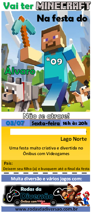 Modelo Convite minecraft Brasília 04/08/2015 300 × 684 Festa Infantil – Tema Minecraft Curtir Carregando...
